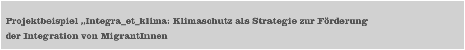 •  Projektbeispiel „Integra_et_klima: Klimaschutz als Strategie zur Förderung der Integration von MigrantInnen