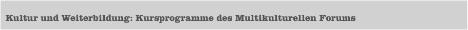 •  Kultur und Weiterbildung: Kursprogramme des Multikulturellen Forums
